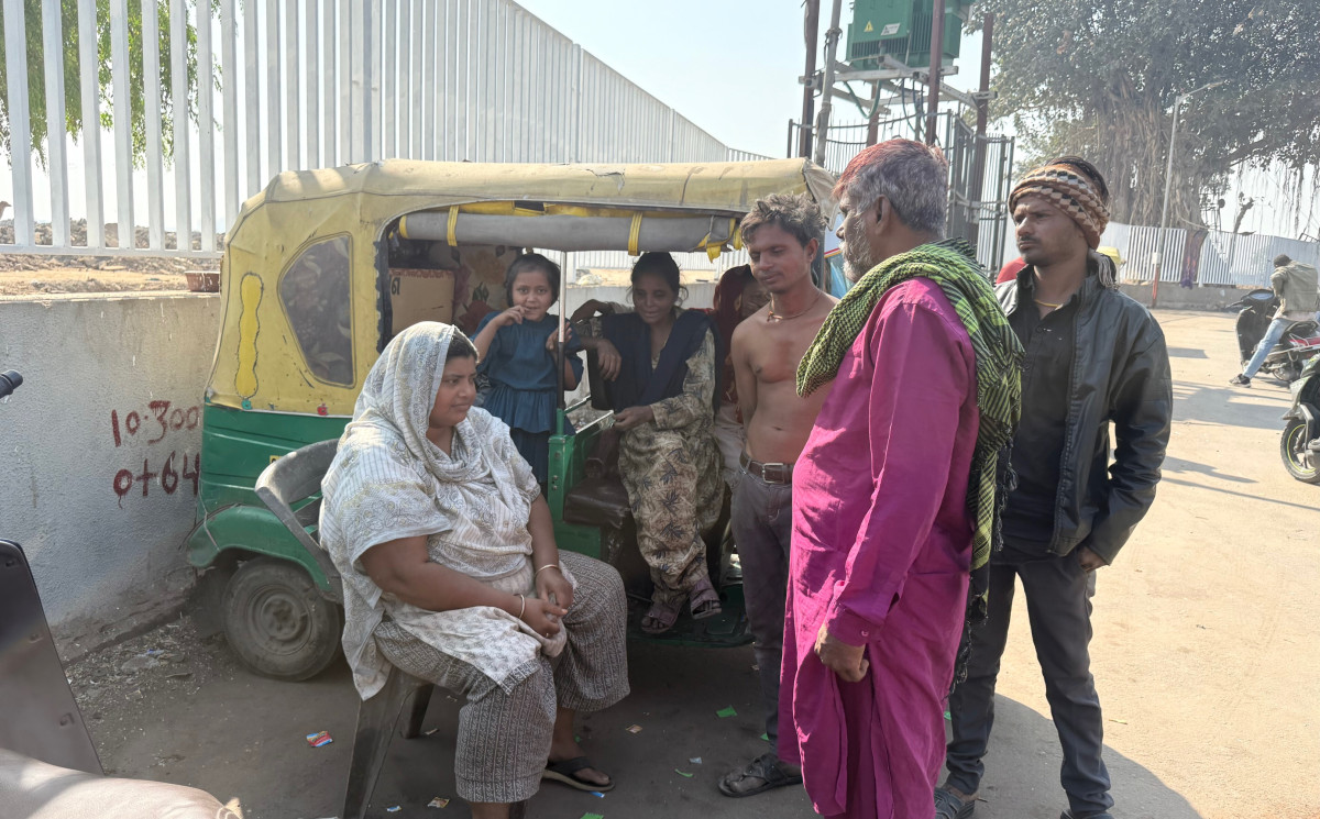 Sarkari Bano talks to her former neighbours in Chandola Lake’s Siyasat Nagar. Photo: Tarushi Aswani