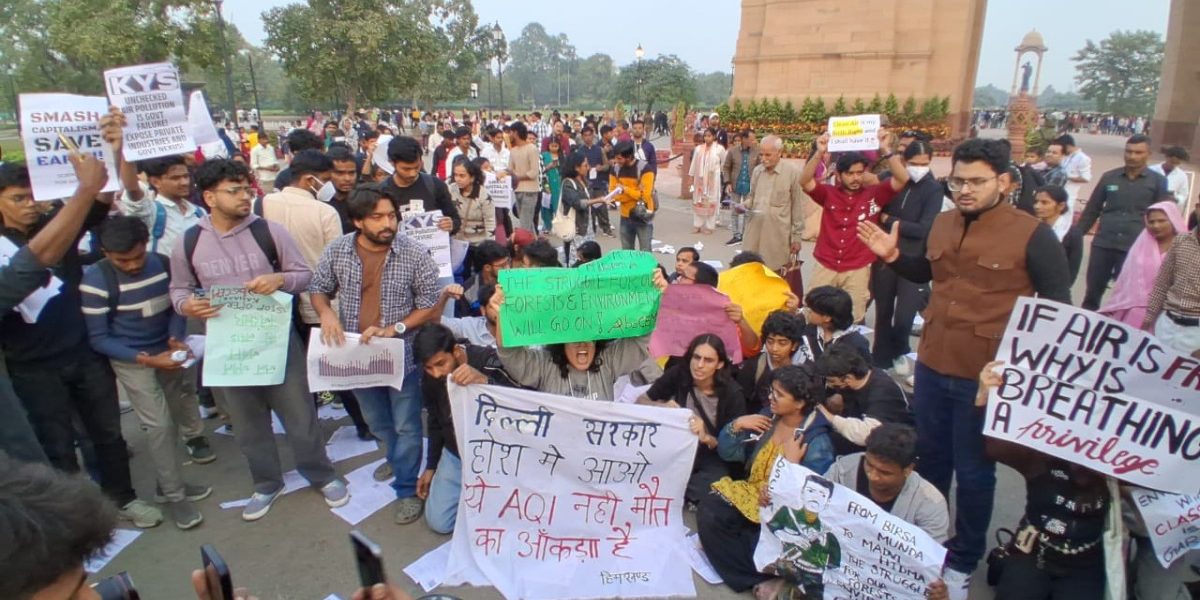 The demonstrators had gathered to demand meaningful government action against Delhi’s spiralling winter pollution. The air has been toxic in Delhi for over a month now, with the air quality index (AQI) showing a reading of over 400 – “hazardous” – in recent days.