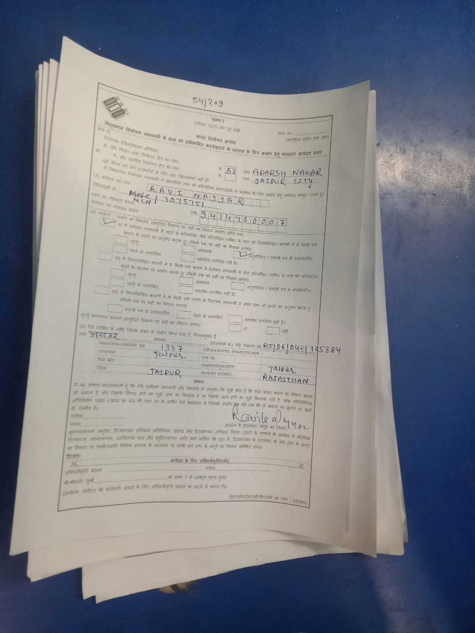 Documents accessed by Maktoob from BLA Naimuddin show that he did not sign several Form 7 applications, which are used to seek the deletion of names from the electoral roll. One such Form 7 lists Ravi Nayyar, the BJP candidate from Adarsh Nagar in the last assembly election, and seeks deletion of voters including Shahida, Rehana, and Shakir. In a written statement, Naimuddin categorically stated that he neither signed nor authorised these applications, casting serious doubt on the authenticity of the deletion requests.