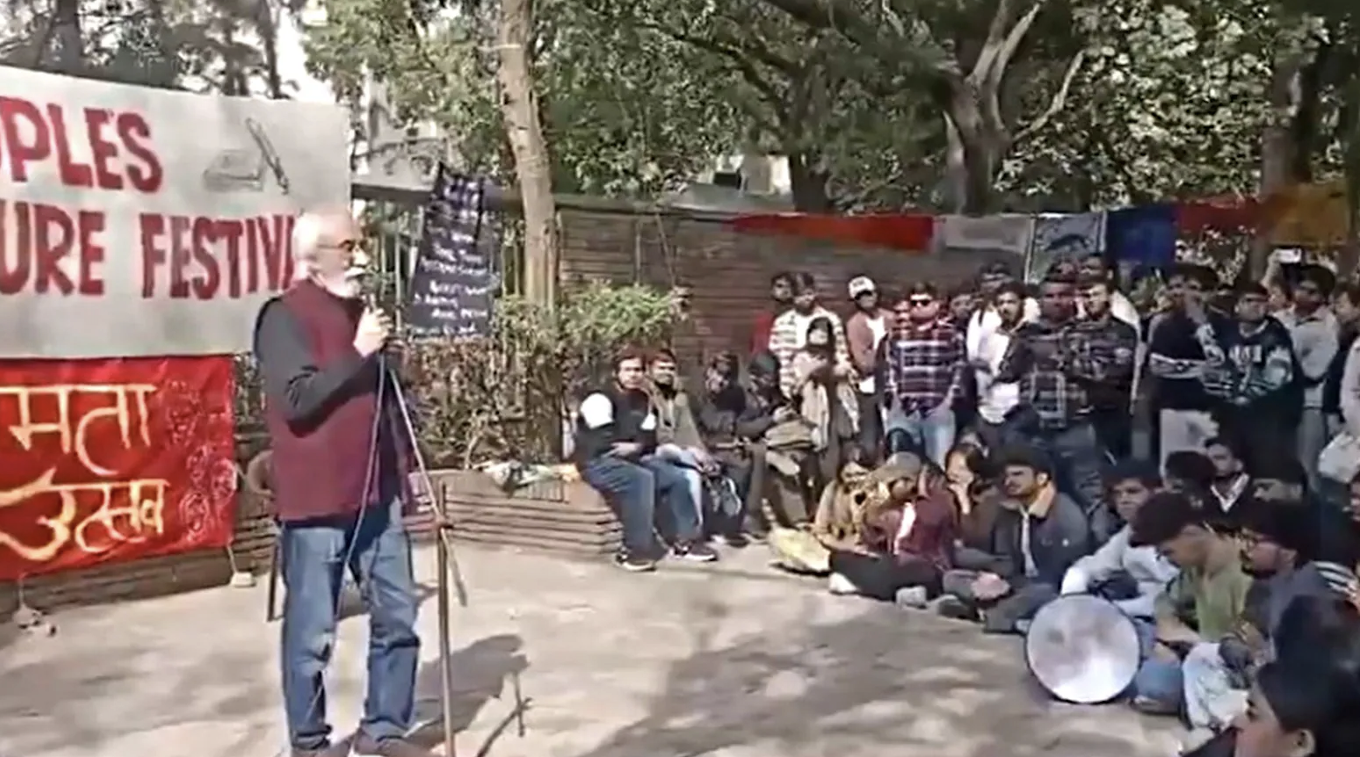 A video circulating on social media on Wednesday shows a bucket filled with water being thrown at historian S Irfan Habib while he was speaking near Gate 4 of the Arts Faculty at Delhi University during a literature festival organised by students.