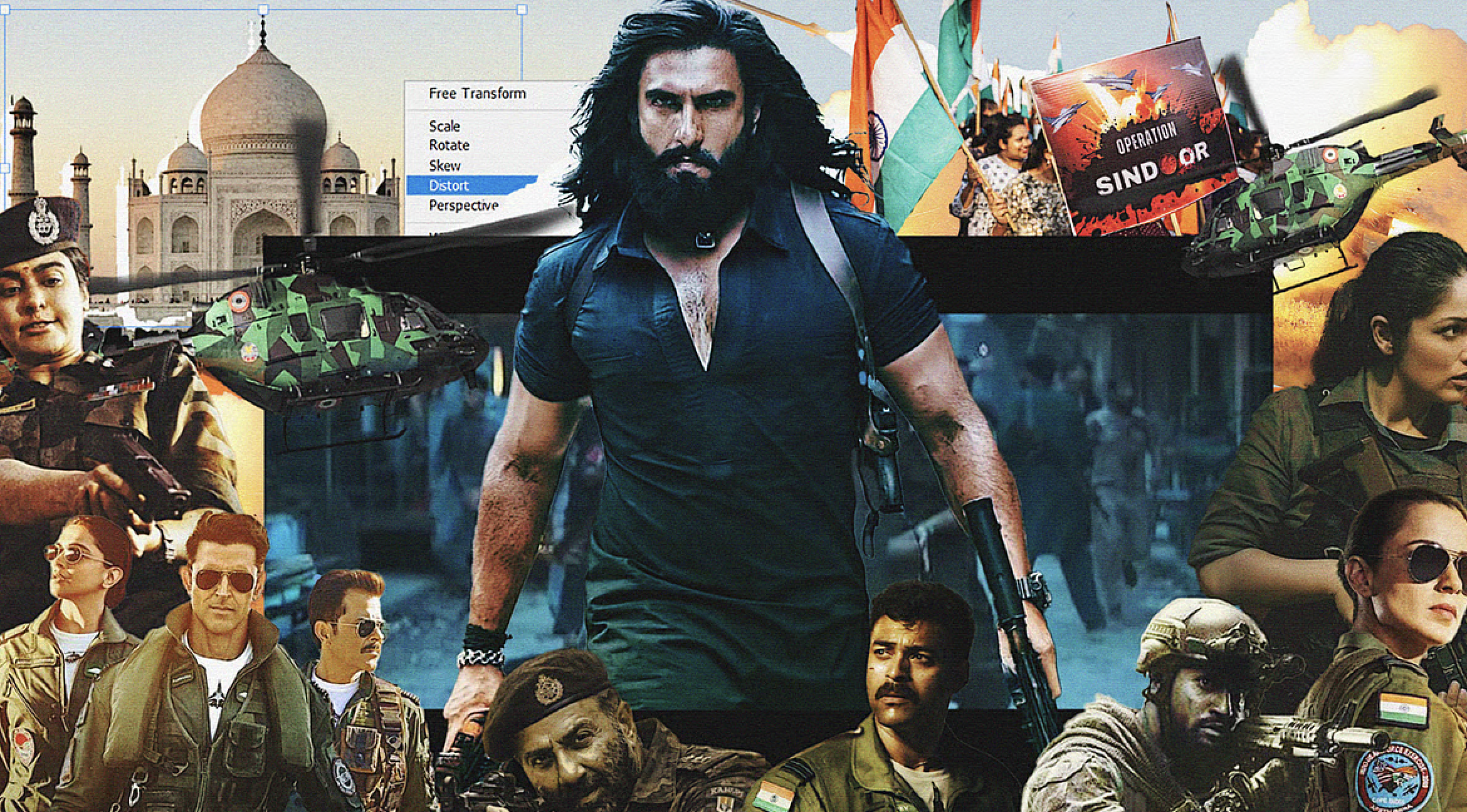 Recent Hindi films increasingly echo Hindutva politics, recasting history, glorifying militarism and normalising Islamophobia in the service of a majoritarian national project. Composite by Manna Phanjoubam