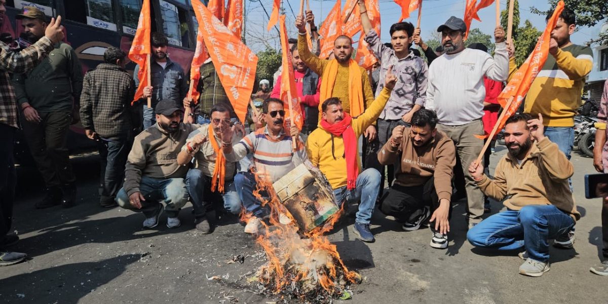 Shouting slogans such as ‘vacate the JDA land’ and ‘vacate the government land,’ the activists led by Rashtriya Bajrang Dal (RBD) state president Rakesh Bajrangi condemned the ruling National Conference-led (NC-led) government for allegedly failing to address the issue.