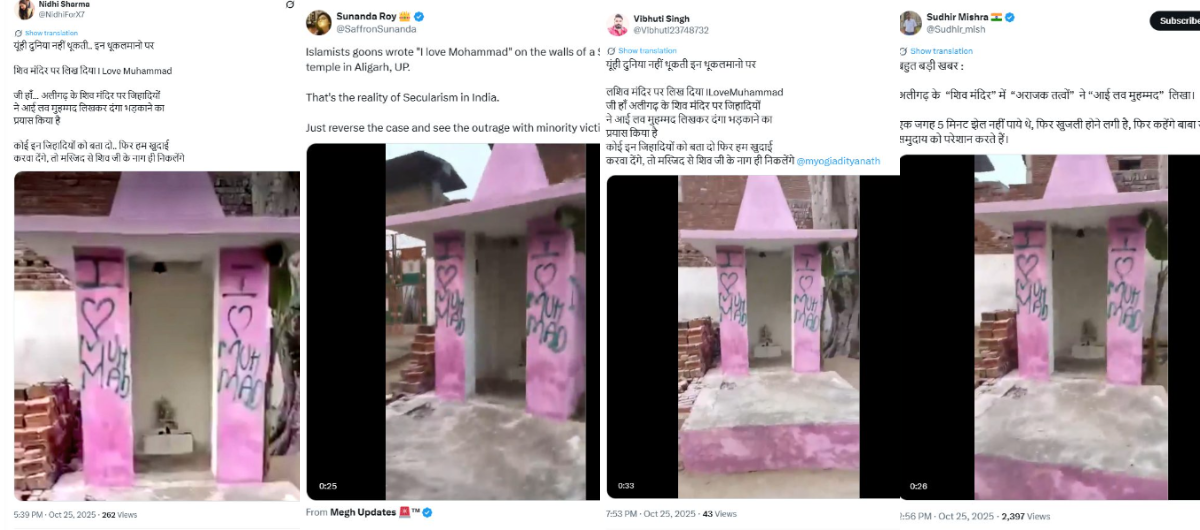 Pro-Right social media user @KreatelyMedia, whose posts have often been fact-checked by Alt News, shared the visuals, blaming ‘Islamists’ for desecrating the temple. “As the population grows, so will their terror,” the user remarked.