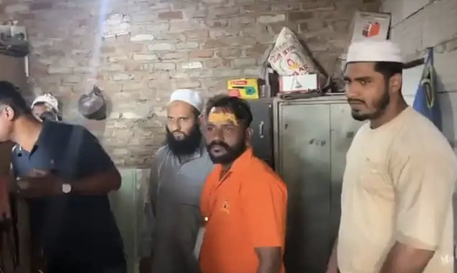 A video has emerged on social media platforms where members of the Hindu Surakhsha Seva Sang interrupt the prayer taking place inside a house, and demand their Aadhaar cards.