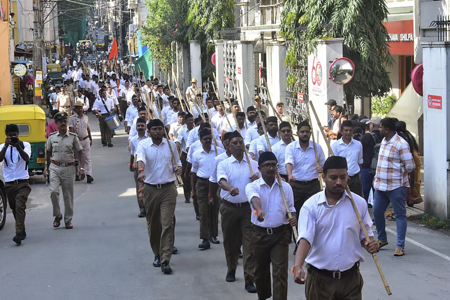On October 12, thousands of men dressed in khaki and holding lathi sticks took to the streets of Bengaluru. One hundred marches were held across the city, with each reportedly seeing a turnout of 200-500 men. The large, lathi-wielding turnout marked the centenary year of an organisation that is not even formally registered, that is, the Rashtriya Swayamsevak Sangh (RSS).
