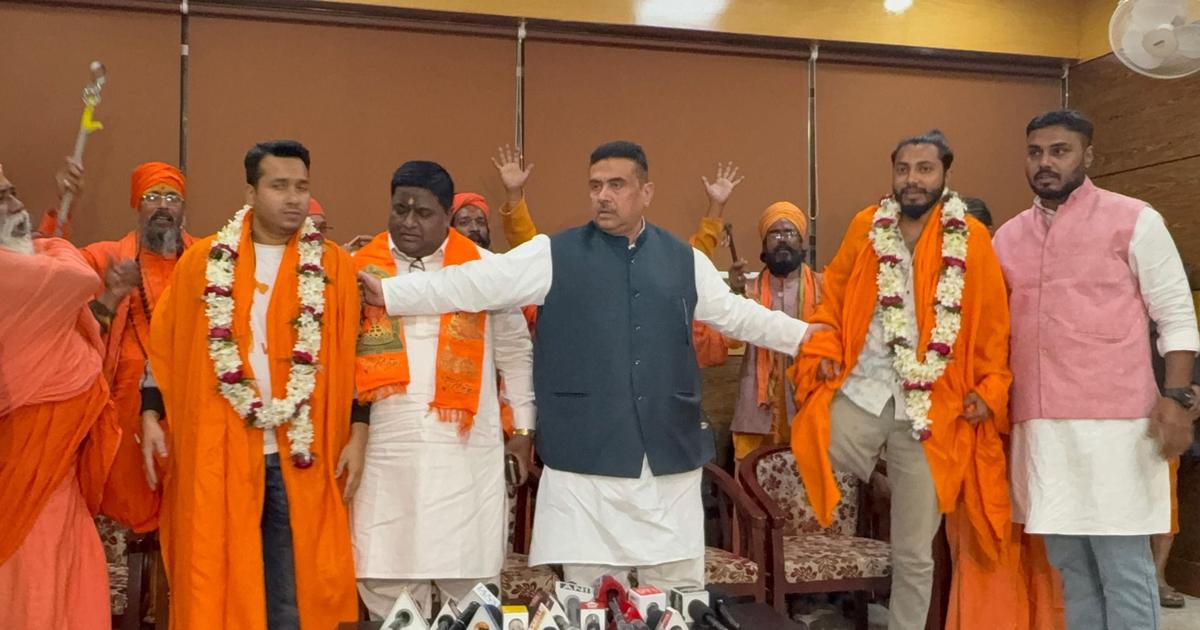 The event, Panch Lokkho Konthe Gitapath (Gita recitation in five lakh voices), was organised on Sunday by the Sanatan Sanskriti Sansad, a collective of monks and Hindutva outfits. Several BJP leaders, including Adhikari and Samik Bhattacharyya, were also present.