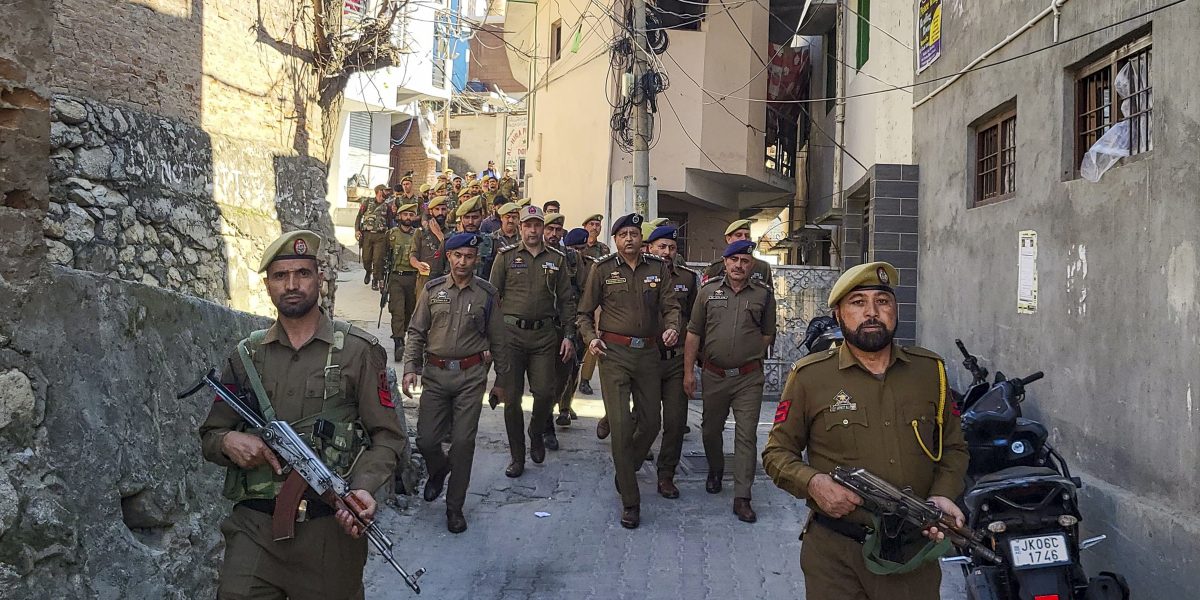 Several hundreds of police and paramilitary forces – some in riot gear, others with automatic rifles – patrolled the roads of the summer capital Srinagar, especially around Lal Chowk in the city centre, where a massive protest on Sunday took the security agencies by surprise.