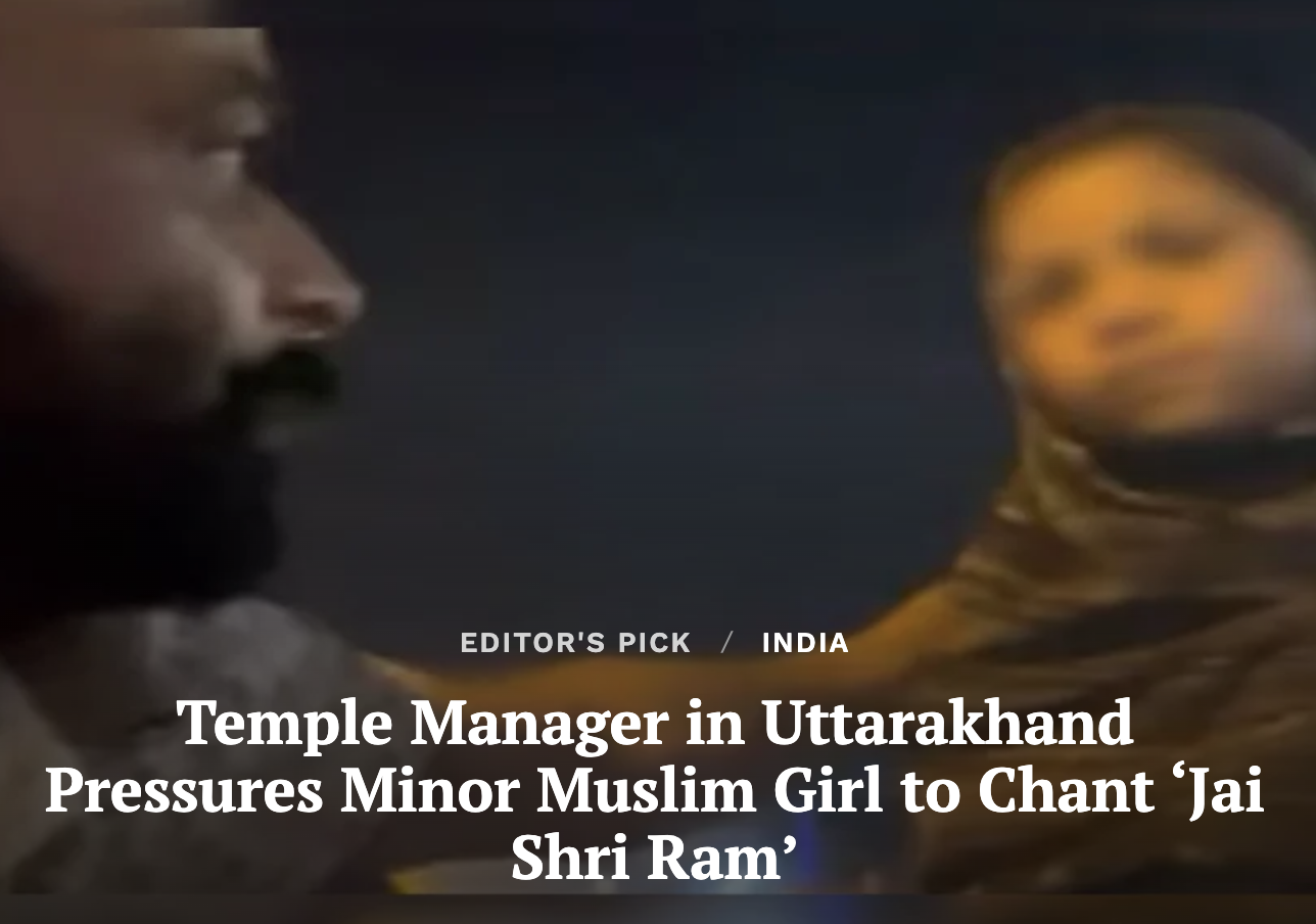 Temple Manager in Uttarakhand Pressures Minor Muslim Girl to Chant ‘Jai Shri Ram’ (Clarion India)