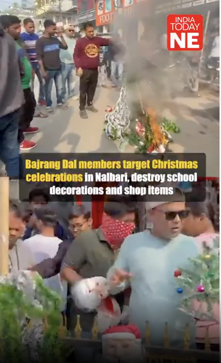 Here’s one: At St. Mary’s School in Panigaon, Nalbari, Assam, Bajrang Dal members tore down Christmas decorations and set them alight.